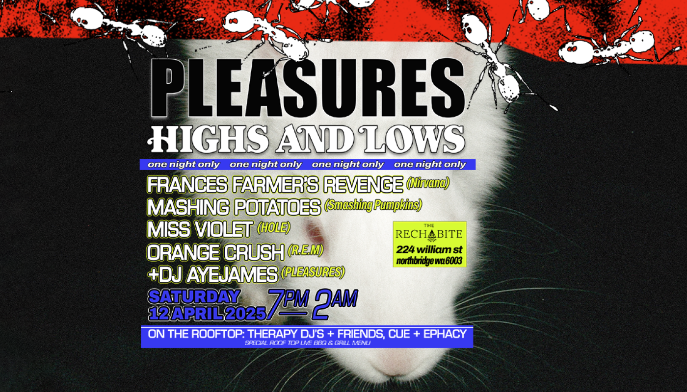 A nostalgic evening straight out of the early '90s festival archives. Join us for a night of pure nostalgia at one of Perth City's best venues, The Rechabite.